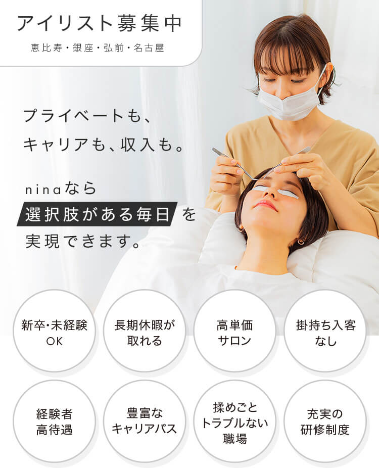 A.新卒でアイサロンに迷っているなら絶対ニーナ!と言えるほど、自分自身ニーナに入社して本当に良かったと感じています!